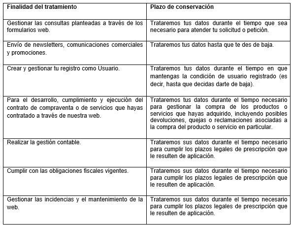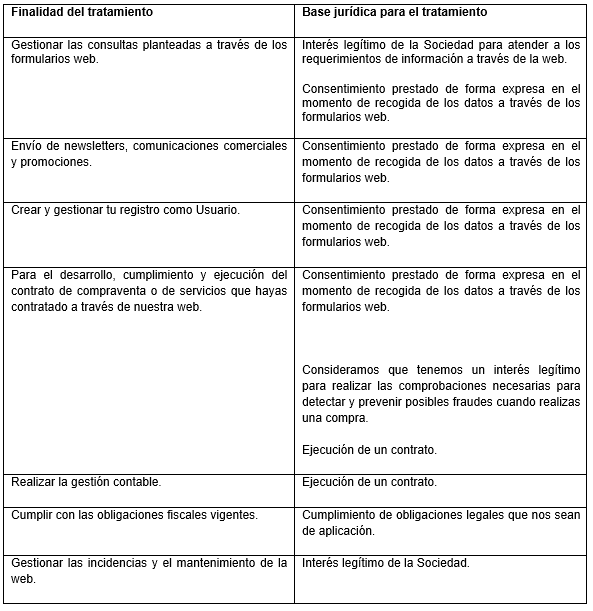 cumplir las finalidades indicadas en la presente Política de Privacidad, es